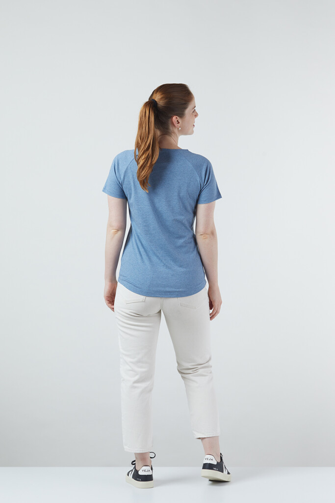 Die Passform des T-Shirts ist leicht tailliert und hat eine längere Rückenpartie sowie Raglanärmel und einen Rundhalsausschnitt.