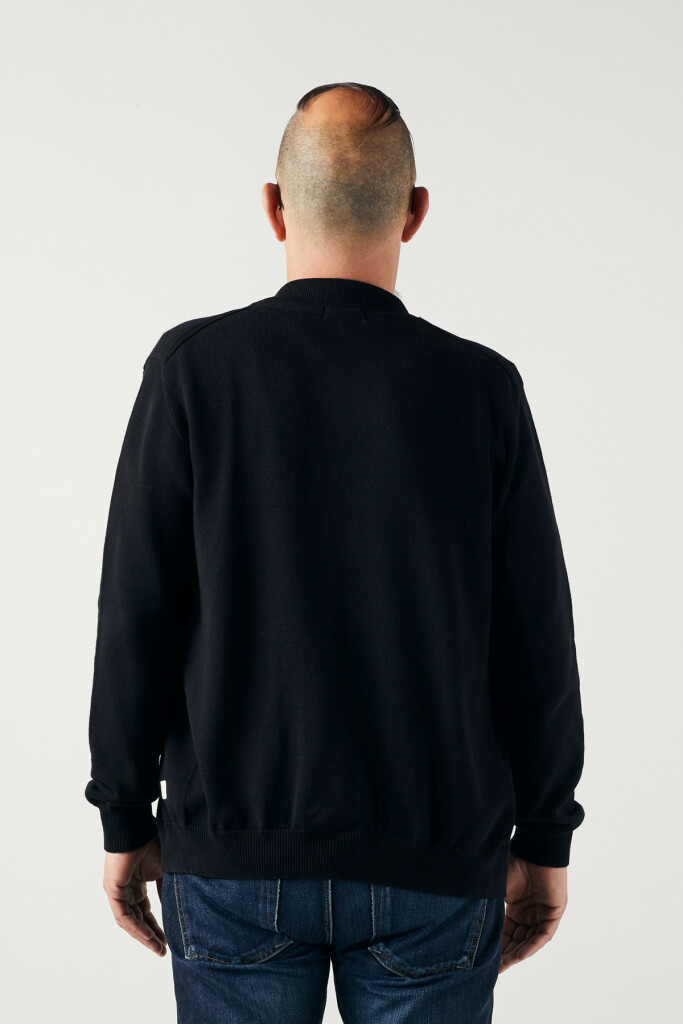 Die nahtlose Strickjacke hat eine normale Passform, einen kleinen Stehkragen, einen YKK-Reissverschluss über die gesamte Länge und der Saum sowie die Ärmelbündchen sind gerippt.