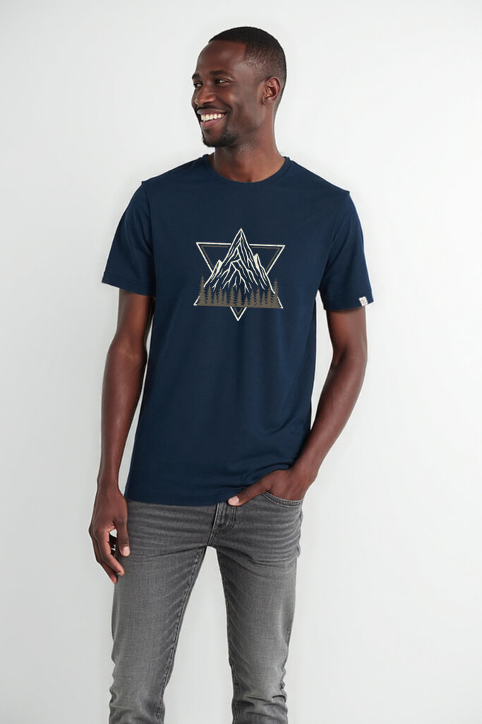 Das Druckmotiv «Alpine Peaks» wurde von «Anette Sommerseth» gestaltet und wird in sorgfältiger Handarbeit per Siebdruck mit Cradle to Cradle Certified® Farbe bei Durchstarter Werbetechnik GmbH in Schwyz gedruckt.