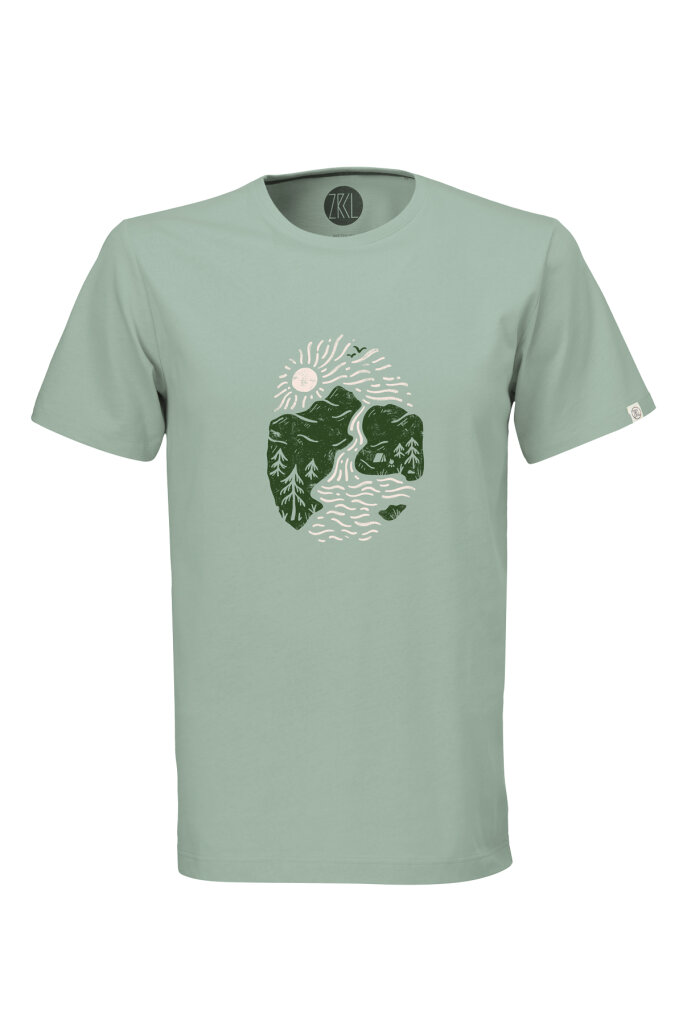 Das Druckmotiv «Riverside» wurde von «WE ARE ZRCL» gestaltet und wird in sorgfältiger Handarbeit per Siebdruck mit GOTS zertifizierten Farbe bei Durchstarter Werbetechnik GmbH in Schwyz gedruckt.