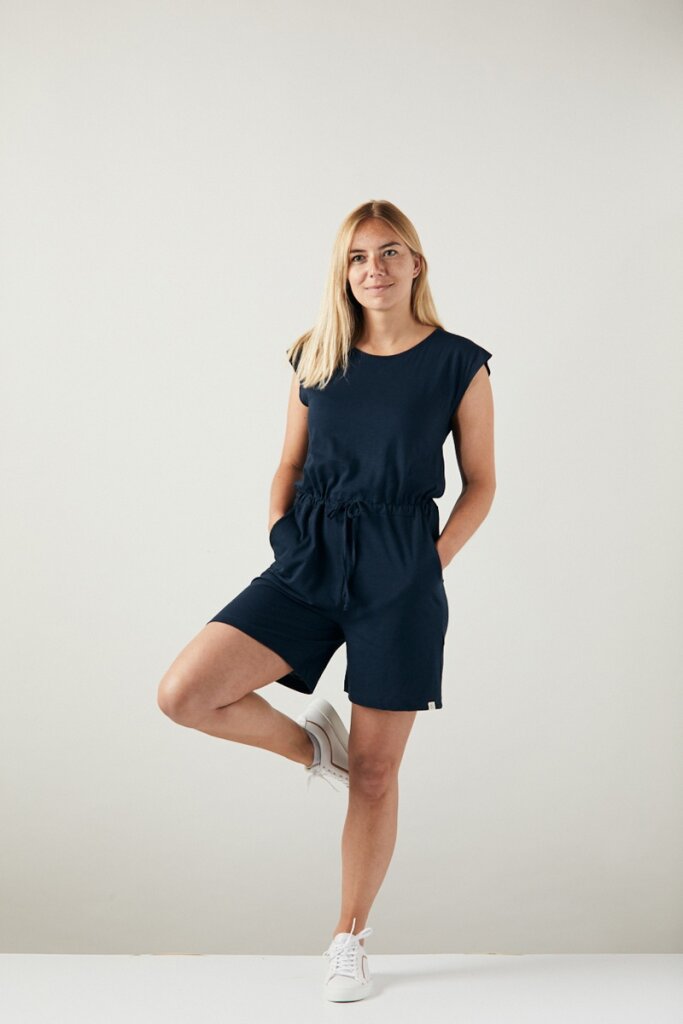 Die lässige Passform der Jumpsuit umspielt wunderbar deine Figur und hat die perfekte Länge für den Sommer. Der lockere Schnitt schränkt dich zudem in deiner Bewegung nicht ein. Weiter verfügt er über Seitentaschen und einen Band-Schnürung an der Taille. Der hübsche Rückenverschluss, mit einem feinen Knopf aus Olivenholz, sorgt für das besondere Etwas.