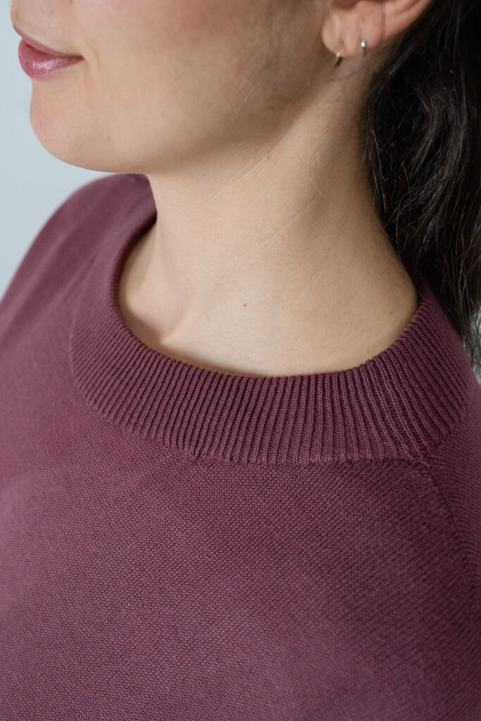 Die Passform des nahtlosen Strickpullovers ist leicht, locker und gerade geschnitten. Er hat einen U-Bootausschnitt mit doppeltem Rippenbund, der schmeichelnd um den Hals liegt und einen feinen Saum- und Ärmelbund.