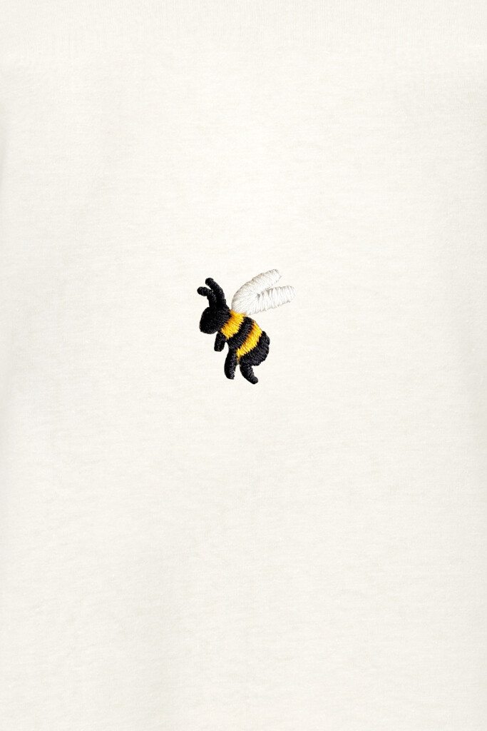 Zudem hat es einen dezenten Stick auf der Brust aus Cradle to Cradle Certified® zertifiziertem Garn. Das Stickmotiv «Bee» wurde in der Schweiz bei Baldoni GmbH in Wittenbach gestickt und von «WE ARE ZRCL» gestaltet.