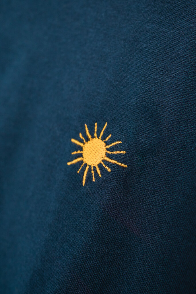 Zudem hat es einen dezenten Stick auf der Brust aus Cradle to Cradle Certified® zertifiziertem Garn. Das Stickmotiv «Sun» wurde in der Schweiz bei Baldoni GmbH in Wittenbach gestickt und von «WE ARE ZRCL» gestaltet.