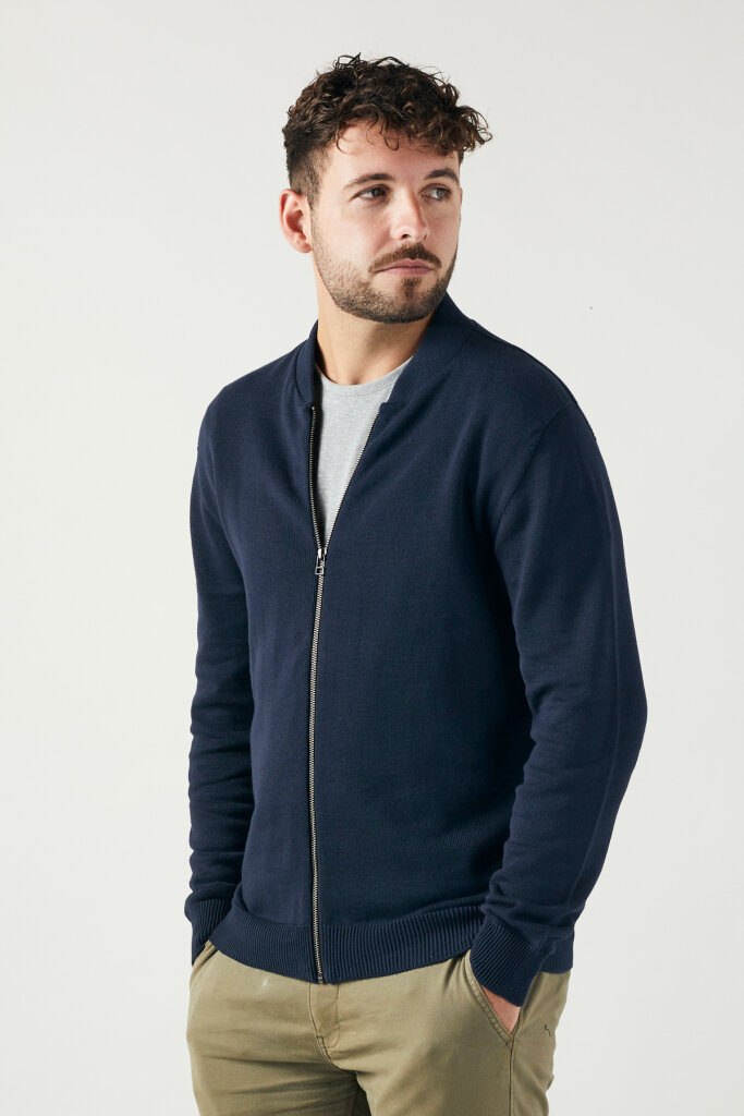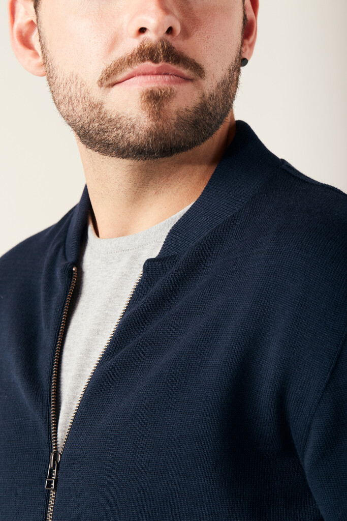 <p><strong>Nachhaltige Essentials // Made in Switzerland</strong><br />Für alle, die es sportlich und elegant mögen. Die nahtlose Strickjacke ist ein absolut nachhaltiges Must-have für jeden mode- und umweltbewusster Mann. Je nach Kombination ist sie perfekt für Business oder Alltag.p><br /><p><strong>Passform</strong><br />Die nahtlose Strickjacke hat eine normale Passform, einen kleinen Stehkragen, einen YKK-Reissverschluss über die gesamte Länge und der Saum sowie die Ärmelbündchen sind gerippt.<p><br /><p><strong>Konsequent nachhaltig</strong><br />Fashion und ökologische sowie soziale Verantwortung schliessen sich nicht aus. Wer von uns produzierte Textilien trägt, setzt ein Zeichen – für sich genauso wie für Mensch und Umwelt. Denn wir verwenden für unsere SWISS EDITION Kleidungsstücke ausschliesslich Bio-Baumwolle der Qualitätsmarke bioRe® Sustainable Cotton von Remei. Diese Bio-Baumwolle wird fair gehandelt und unter fairen Bedingungen produziert. Sie stammt aus kontrolliert biologischem Anbau von Kleinbauern in Indien und Tansania. Zudem wird für den Anbau der Bio-Baumwolle ausschliesslich gentechfreies Saatgut eingesetzt.<p><p>Der nahtlose Strickpullover wird an einem Stück in Bichelsee im Kanton Thurgau bei Innolana AG gestrickt. Das nahtlose Strickverfahren führt zu einem minimalen Garn- und Stoffverbrauch, wodurch bei der Produktion keine Abschnitte anfallen und somit weniger Produktionsabfall entsteht. Made in Switzerland bedeutet zudem kürzere Produktionswege und regionale Wertschöpfung. Für das Bleichen, Färben, Waschen und Bedrucken setzen wir ausschliesslich auf umweltfreundliche Stoffe, sodass am Ende die Textilien sicher und frei von Schadstoffen sind.<p><p>Erfahre mehr über unsere konsequente Nachhaltigkeit...<p><br /><p><strong>Transparenz</strong><br />Transparenz und Rückverfolgbarkeit sind für uns ein Muss. Deshalb gehen wir über das übliche «Made in …» auf dem Pflegeetikett hinaus. Jedes Kleidungsstück von uns trägt eine Traceability-Nummer auf dem Pflegeetikett. Du kannst die Nummer auf unserer «TRACK ME» Seite eingeben. Dies ermöglicht es dir, die gesamte Produktionskette von gentechfreiem Saatgut bis zum fertigen Produkt rückverfolgbar zu machen.<p>