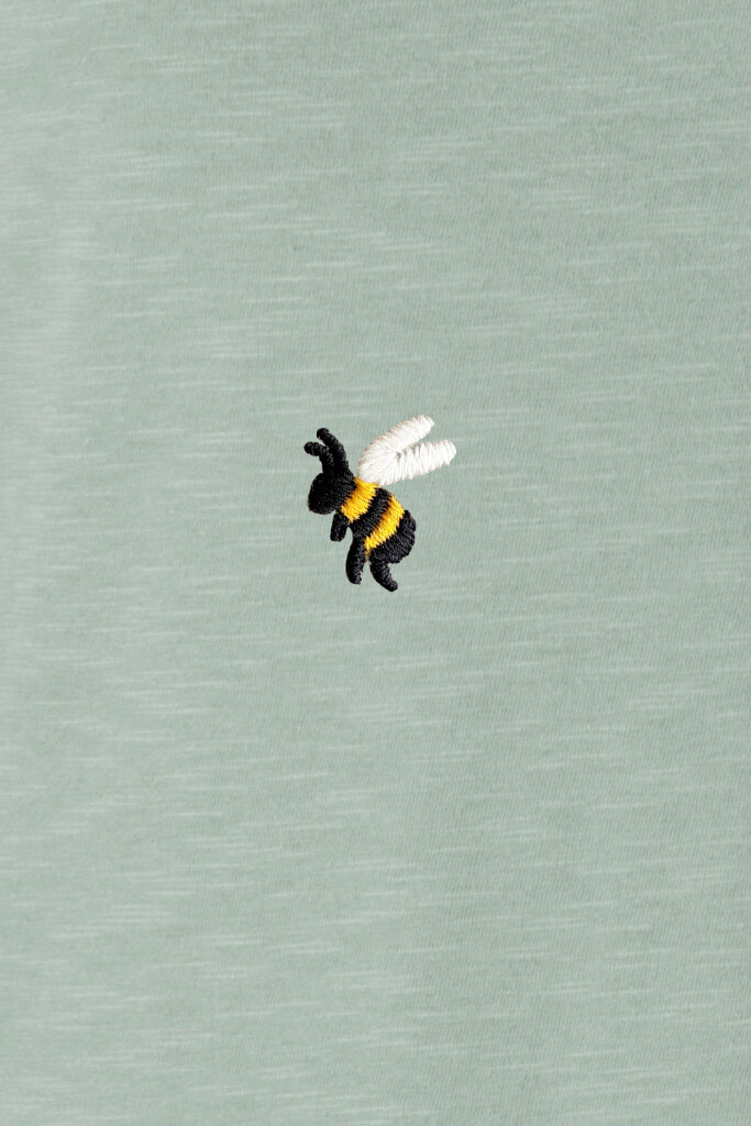 Zudem hat es einen dezenten Stick auf der Brust aus Cradle to Cradle Certified® zertifiziertem Garn. Das Stickmotiv «Bee» wurde in der Schweiz bei Baldoni GmbH in Wittenbach gestickt und von «WE ARE ZRCL» gestaltet.