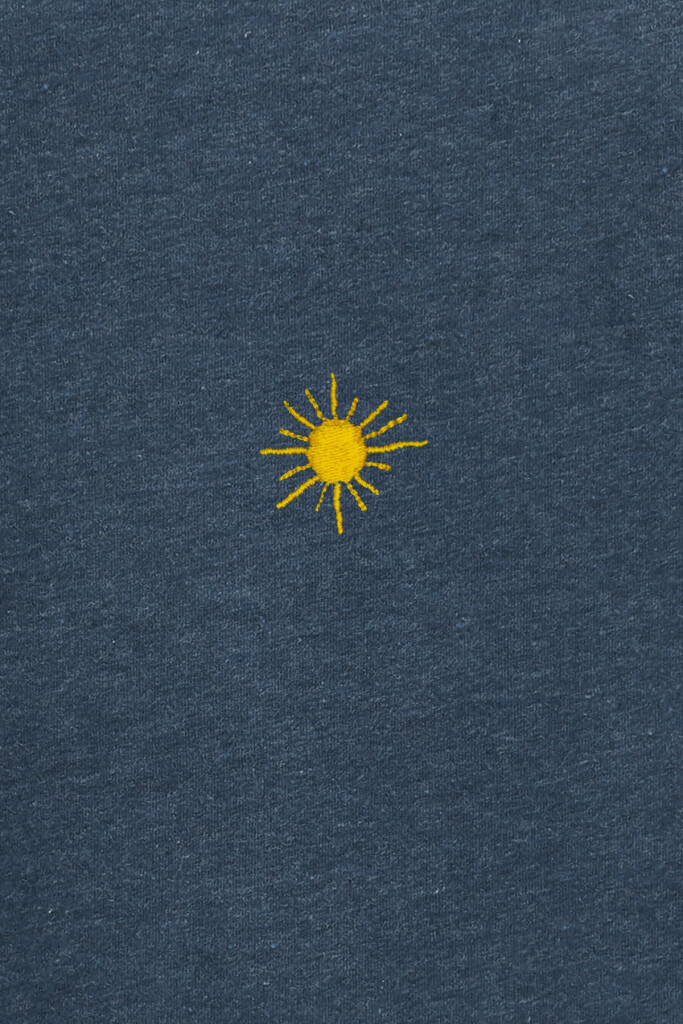 Zudem hat es einen dezenten Stick auf der Brust aus Cradle to Cradle zertifiziertem Garn. Das Stickmotiv «Sun» wurde in der Schweiz bei Baldoni GmbH in Wittenbach gestickt und von «WE ARE ZRCL» gestaltet.