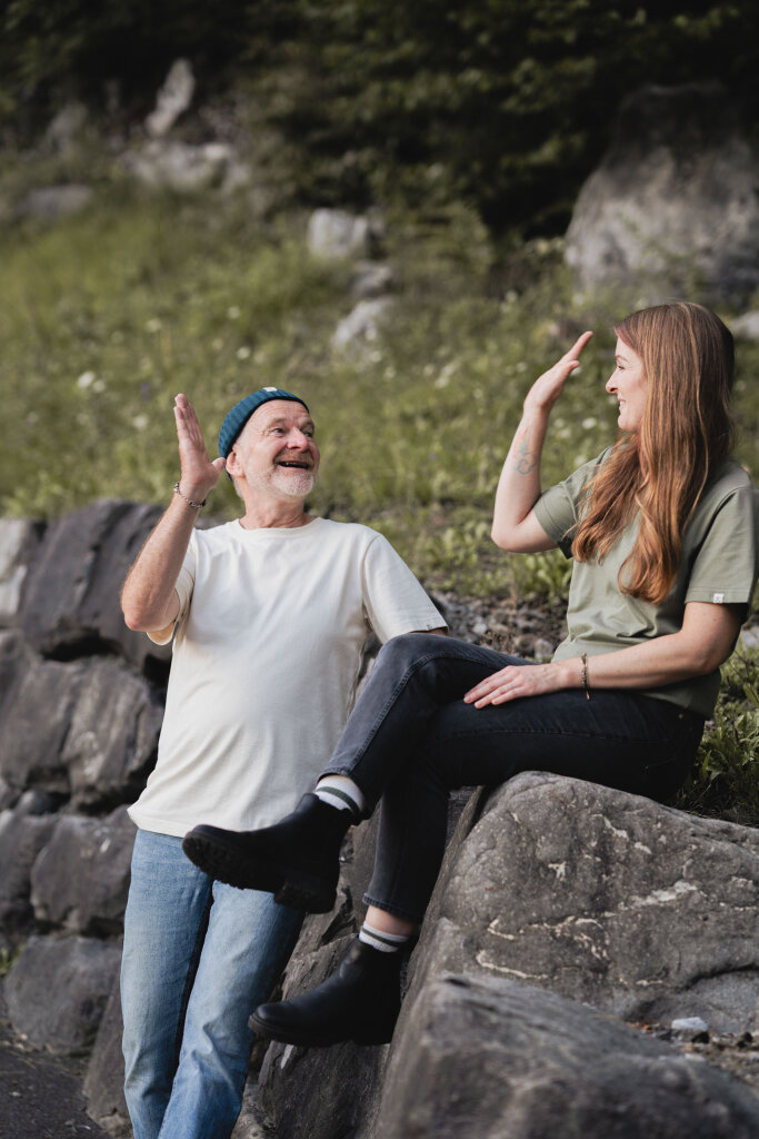 Das Rohgarn wird in der Schweiz gezwirnt, wodurch das Garn eine bessere Qualität erhält, sich weniger verzieht und langlebiger wird. Anschliessend wird das qualitativ hochwertige Garn bei Isa Sallmann in Amriswil, Schweiz zu einem reinen Bio-Baumwollstoff gestrickt. Bei Johann Müller in Strengelbach, Schweiz wird der Stoff eingefärbt. Für das Bleichen und Waschen setzen wir ausschliesslich auf umweltfreundliche Stoffe und für das Färben auf Cradle to Cradle zertifizierte Farben, sodass am Ende die Textilien sicher und frei von Schadstoffen sind. Nach dem Färben wird der Stoff bei Schuler Uniform in Rothenthurm, Schweiz zugeschnitten und zu einem T-Shirt zusammengenäht. Made in Switzerland bedeutet zudem kürzere Produktionswege und regionale Wertschöpfung.